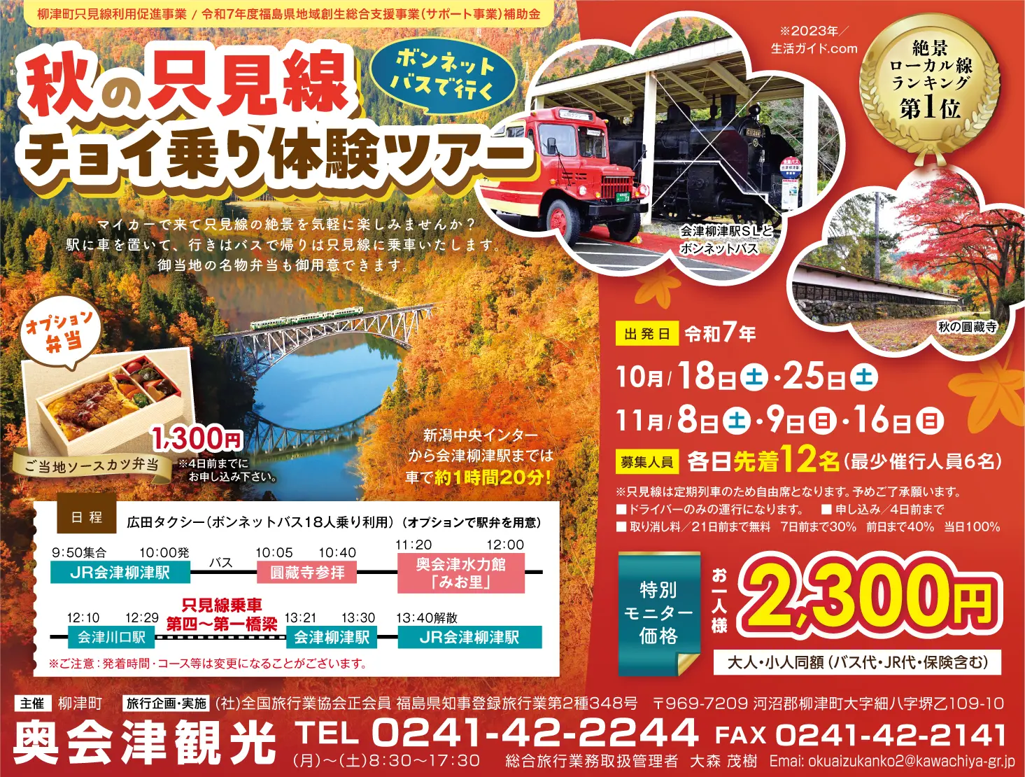 お知らせ秋の只見線チョイ乗り体験ツアーの実施について