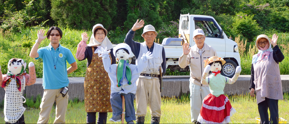 只見駅では、毎日インフォメーションセンタースタッフが小出行きの列車のお見送りを行っています。今年の夏から、一緒に手をふって見送りしてくれる仲間が増えました。その仲間とは、ずばり「かかし」。子どもからおじいさん、おばあさんまでの10体が只見駅裏の畑に立っています。地元の方が古着などを利用して、表情豊かなかかしを製作してくれました。これからの紅葉から雪が降るまでの間、只見駅に訪れたら、駅や列車はもちろん、かかしたちもぜひご覧くださいね。只見駅でのお見送りの参加もお待ちしています。