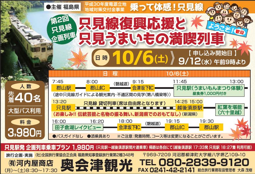 なお、郡山発着プランは既に定員に達していますが、企画列車乗車プラン(只見駅~越後須原駅片道乗車)はお申込が可能です。