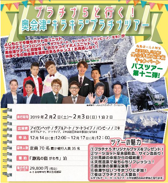2/2~3は、「プラチナ5と行く!奥会津"キラキラ"プラチナツアー」
