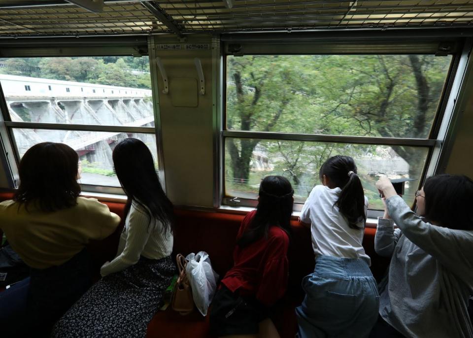全国屈指の絶景ポイントである、第一只見川橋りょう及び第三只見川橋りょうの通過時に、速度を落として運転します。
