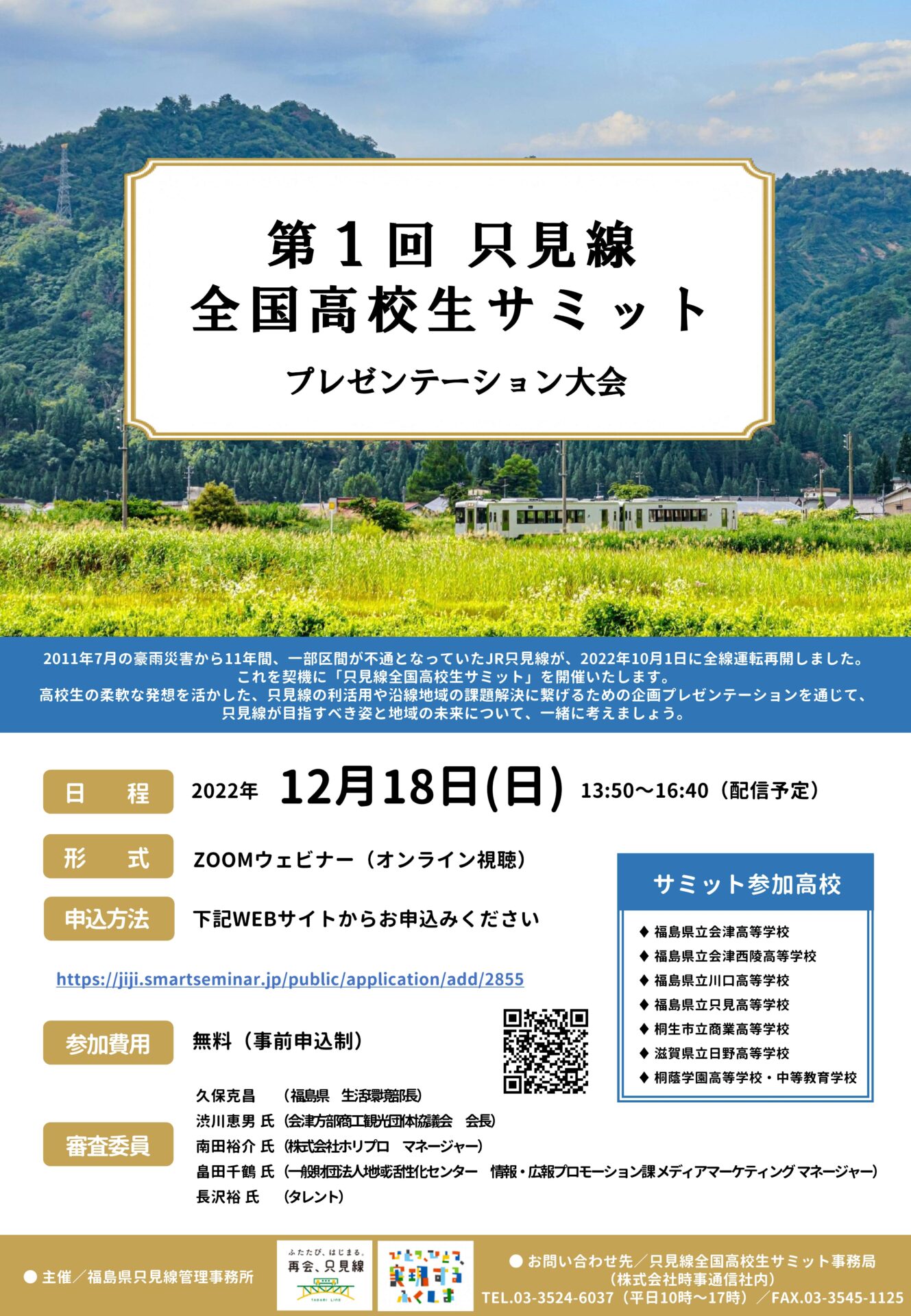 2022年10月1日のJR只見線全線運転再開を契機に「只見線全国高校生サミット プレゼンテーション大会」を開催いたします。