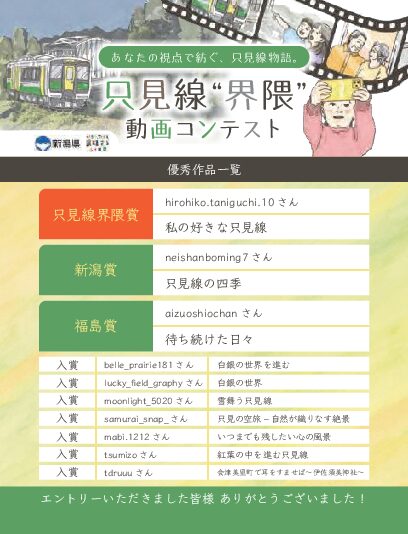 我們舉辦了「只見線“界隈”影片競賽」,徵集能傳達沿線地區魅力的影片,例如「從您喜愛的只見線觀看的風景」、「只見線沿線美食」等。