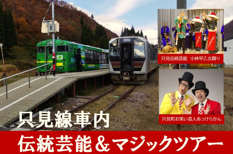 這是一列可以欣賞到只見町傳統藝能,以及只見町應援魔術師「Akkerakan」精采表演的特別列車。